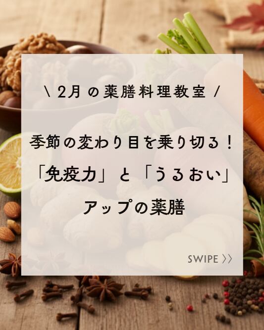 季節の食材を使った薬膳料理を実際に学び、食べられる実践型レッスン。料理初心者の方も安心してご参加いただけます。